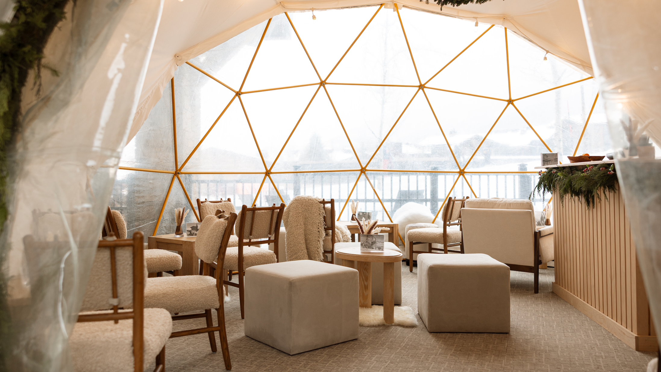 Sno¨ ’65 is an outdoor apre`s-ski lounge in Jackson Hole, offering champagne and light bites slopeside. Open during the winter season, it welcomes both in-house and external guests unless reserved for a private event. Ideal for sparkling apre`s celebrations, intimate gatherings and private dinners, Sno¨ ’65 captures the spirit of luxury apre`s-ski, with elevated beverage selections, curated menus and an inviting outdoor dining setting. Guests gather in a warm, social atmosphere to unwind after a day on the slopes, surrounded by mountain views at the base of Jackson Hole’s iconic ski slopes.